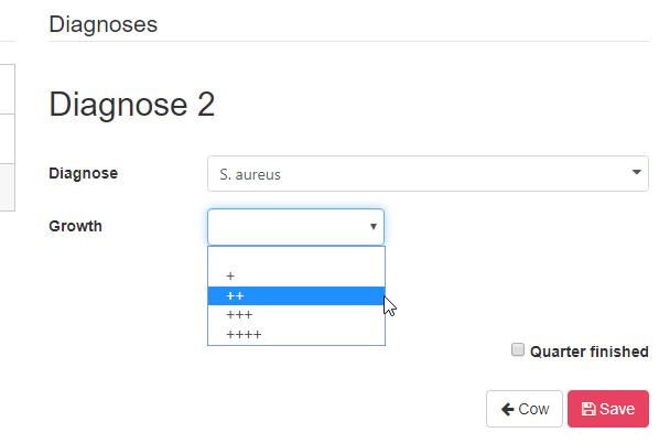 Via 4 categories (+, ++, +++, ++++), you can indicate the strength of the growth per pathogen found on the agar plate.