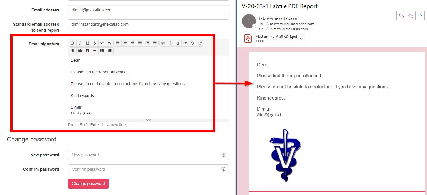 Do you already have a (common) email address to which all other lab results are sent? Fill in this email address in the field "Standard email address to send report" in your personal settings, and you will receive a copy of each result as soon as the report is sent to the producer.